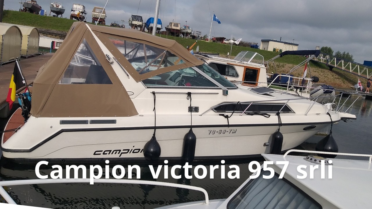Campion Victoria 957 SRLi – Geräumiger und leistungsstarker Sportkreuzer mit Komfort und PotenzialDie Campion Victoria 957 SRLi aus dem Jahr 1994 ist ein Polyester-Sportkreuzer mit einer Länge von 9,57 Metern und einer Breite von 3,05 Metern. Dieses Boot kombiniert ein sportliches Erscheinungsbild mit einer funktionalen Aufteilung und bietet Platz sowohl für kurze Tagesausflüge als auch für längere Aufenthalte an Bord. Dank der doppelten Volvo Penta Dieselmotoren mit jeweils 150 PS verfügt diese Campion über ausreichend Leistung für zügiges Fahren auf Binnengewässern und geschützten Küstengebieten. Das Boot ist mit einem tiefen V-Rumpf konstruiert, was für eine stabile Lage und komfortable Fahreigenschaften sorgt, auch bei höheren Geschwindigkeiten oder Wellen.