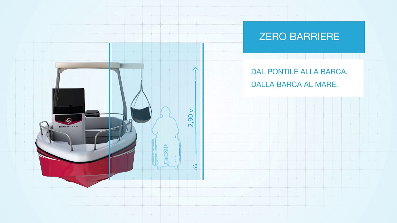 Ausgestattet mit einem SEALIFT-Lift, der es behinderten Menschen ermöglicht, in das Beiboot ein- und auszusteigen sowie im offenen Wasser zu schwimmen, sodass die betreffende Person am Ende des Bades ins Wasser gelassen und an Bord gebracht werden kann. Der Übergang vom Kai zum Boot und vom Boot zum Meer ist daher sofort und einfach.